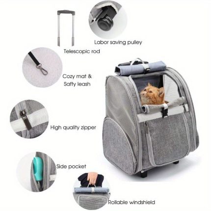 Versatile Pet Backpack: This dual-function pet carrier comes with a mat and a soft blanket, transforming into a backpack, wheeled