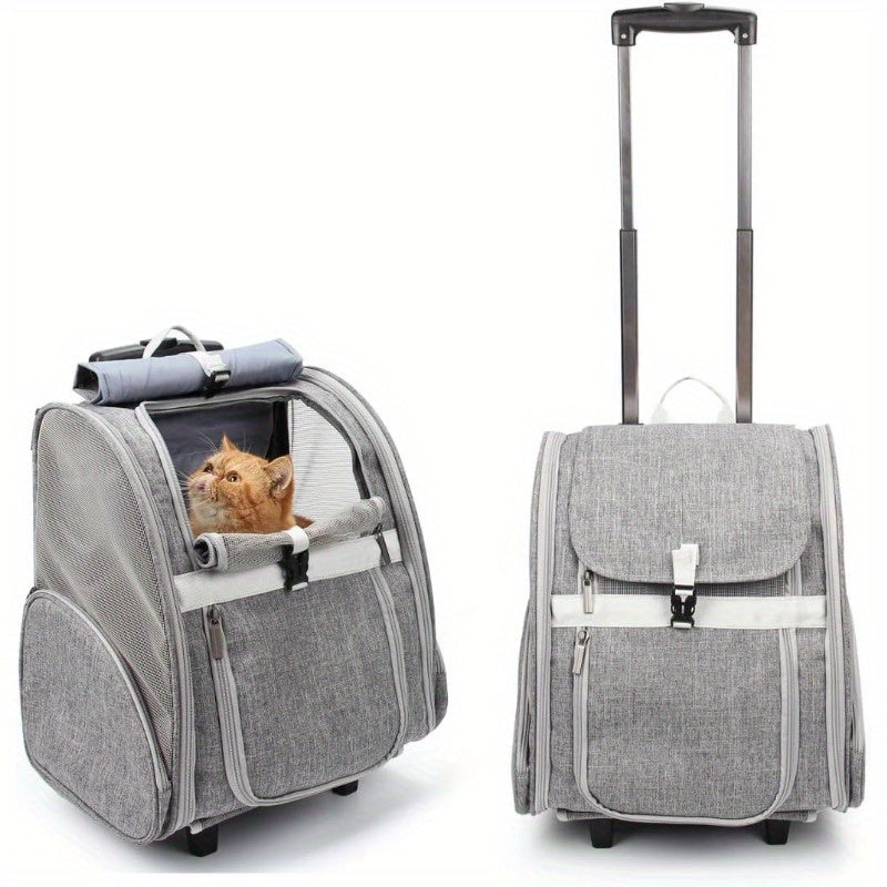 Heavy-Duty Pet Rolling Carrier Backpack with Wheels – Convertible Travel Bag, Spacious Interior, Secure Zipper Closure, Side Pockets – Lightweight & Sturdy Frame for Dogs, Cats, Puppies – Airport, Vet, Shopping Trips – Grey Carrier Trolley, Dog Backpack C