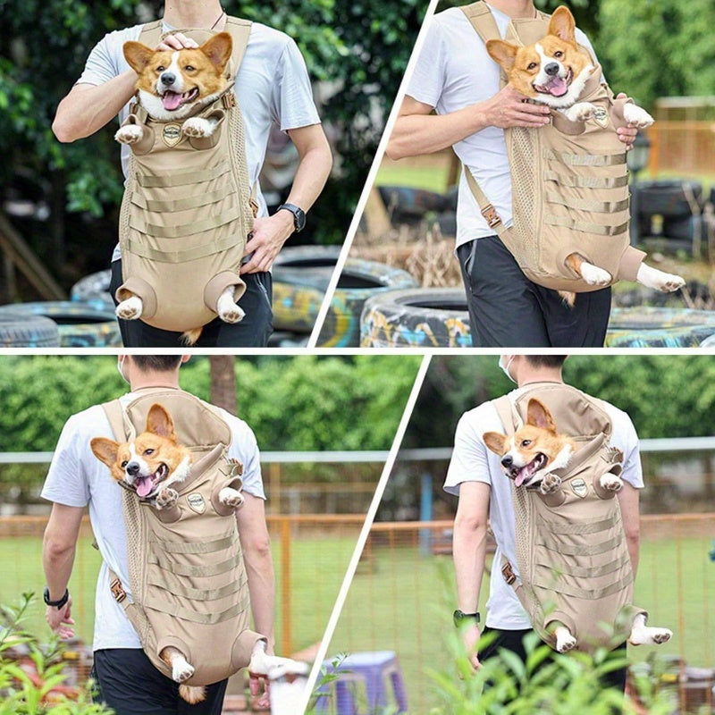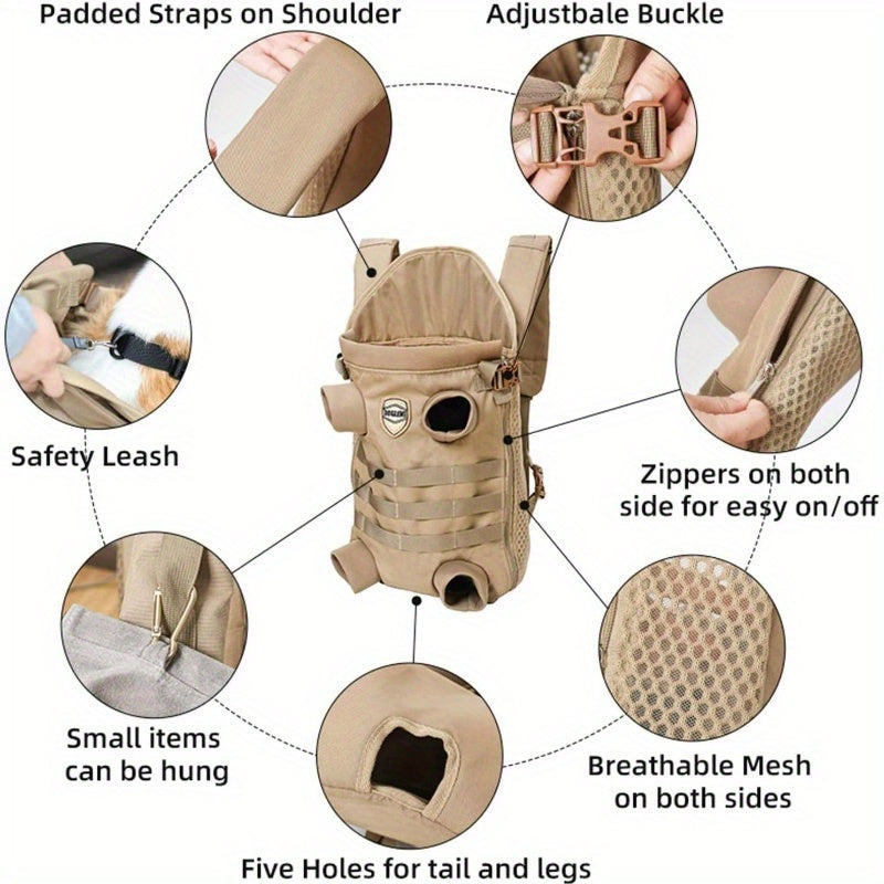 Dog Carrier Tactical Backpack for Small Medium Dogs, Soft HandsFree Legs Out Pet Front Cat Dog Carrier Backpack Travel Bag for Outdoor Traveling Hiking Camping (Large, Khaki)